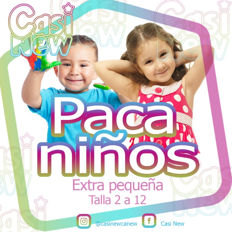 Paca de niños extra pequeña que contiene 200 prendas de ropa americana de las mejores marcas, el cliente selecciona el 70% y la empresa el 30%. Las prendas pueden ser entre las tallas 2 a 12 de niños y niñas.Cada prenda le queda con un costo de $7.800